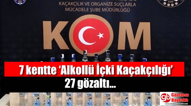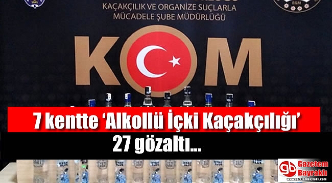 7 kentte ‘Alkollü İçki Kaçakçılığı’ operasyonu düzenlendi.Operasyonlar eş zamanlı olarak Denizli merkezli İzmir, Malatya, Van, Manisa, İstanbul, Ankara ve Tekirdağ'da eş zamanlı olarak yapıldı.Kaçakçılık ve Organize Suçlarla Mücadele Şube Müdürlüğü (KOM) ekipleri koordinesinde yapılan operasyonda 27 kişi gözaltına alındı. Operasyonda litrelerce kaçak içki ele geçirildi.