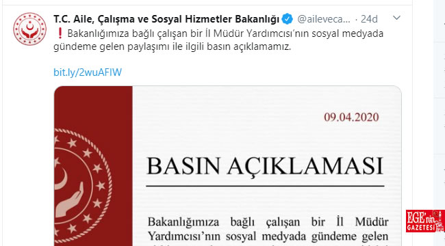 Bakanlık konuyla ilgili açıklama yaptı: "Görevden alınmış ve hakkında soruşturma başlatılmıştır"