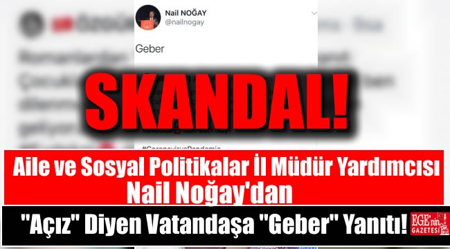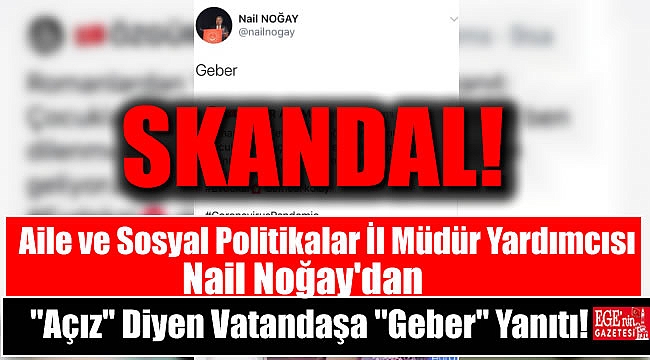 İstanbul Aile ve Sosyal Politikalar İl Müdür yardımcısı görevinde bulunda Nail Noğay, “Çocuklarımız aç, nasıl evde kalalım şimdi ben dilenmekten çöpten yiyecek toplamaktan geliyorum” diyen roman kadına Twitter’dan “Geber” yanıtını verdi.
