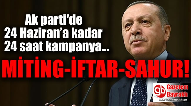 Ak Parti, 24 Haziran’a kadar izlenecek yol haritasını netleştiriyor. Kampanya döneminin ramazana denk gelmesi nedeniyle gündüz yapılacak mitinglerin yanı sıra akşam iftarlar, gece sahur programları düzenlenecek.