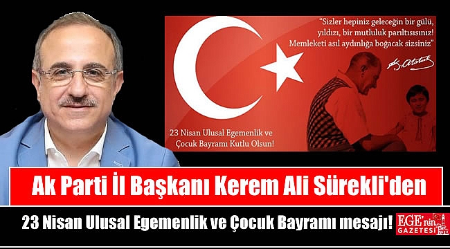 Ak Parti İl Başkanı Kerem Ali Sürekli 23 Nisan Ulusal Egemenlik ve Çocuk Bayramı dolayısıyla mesaj yayımladı.