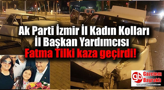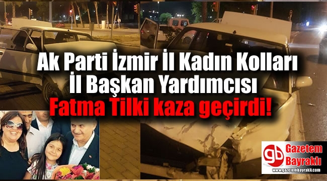 Meydana gelen trafik kazasında, Ak Parti İzmir İl Kadın Kolları Fatma Tilki'nin içinde bulunduğu araç İddiaya göre seyir halinde olan başka araca çarptı. Çarpmanın etkisiyle araçlarda büyük hasar meydana geldi.