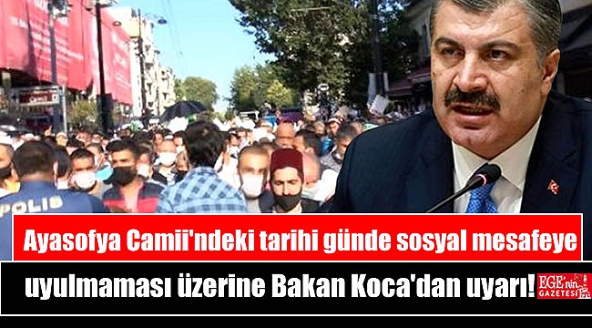 Gece yarısından itibaren Ayasofya'nın çevresinde cuma namazı kılmak için toplanan kalabalık zaman zaman sosyal mesafe kuralını hiçe saydı. Bakan Koca, bu görüntüler üzerine Twitter hesabından tedbir uyarısı yaptı.