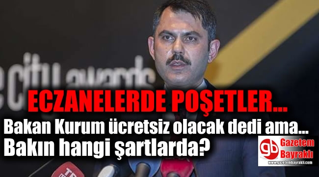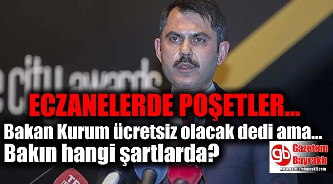 Çevre ve Şehircilik Bakanı Murat Kurum'dan son günlerin en çok konuşulan konularından biri olan naylon poşetlerin ücretli olması uygulaması hakkında flaş açıklama geldi. Eczanelerdeki poşetler ücretsiz olacak. Çevre ve Şehircilik Bakanı Murat Kurum, eczanelerde poşet kullanımına ilişkin olarak, "Eczacılar odasıyla Bakanlığımız arasında bu konuda bir çalışması yürütülüyor. 15'e 25 poşet boyutlarında mikronunu da inceliyoruz, 0,15 mikronun altındaki poşetlerimiz ücretsiz. Vatandaşımızın sağlığı söz konusu. O yüzden eczanede verilen bu ölçülerdeki poşetlerin ücretsiz olması noktasında önümüzdeki hafta usul esaslarımızı yayınlayacağız" dedi.
