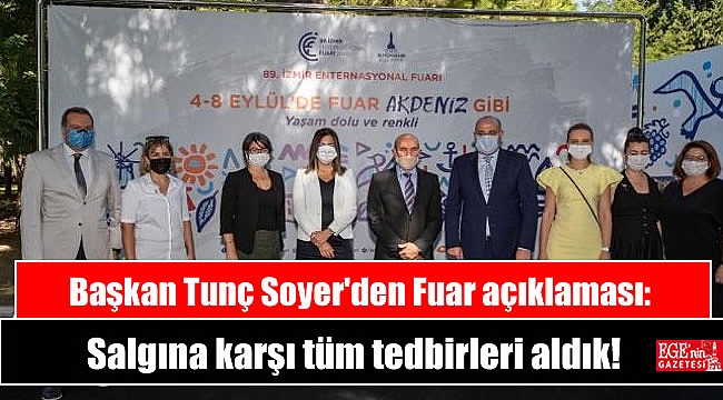 89. İzmir Enternasyonal Fuarı koronavirüs salgınına karşı alınan tüm sağlık önlemleriyle 4 Eylül’de kapılarını açmaya hazırlanıyor. Maske, mesafe ve temizliğin ön planda olacağı fuara dair konuşan İzmir Büyükşehir Belediye Başkanı Tunç Soyer, fuar süresince Kültürpark'a girişlerin kontrol altında tutulacağını belirtti. Soyer, “Bu fuarı yapmak boynumuzun borcu. Salgına karşı tüm önlemleri aldık. Aynı anda içeride 40 bin kişi bulunabilecek” dedi.