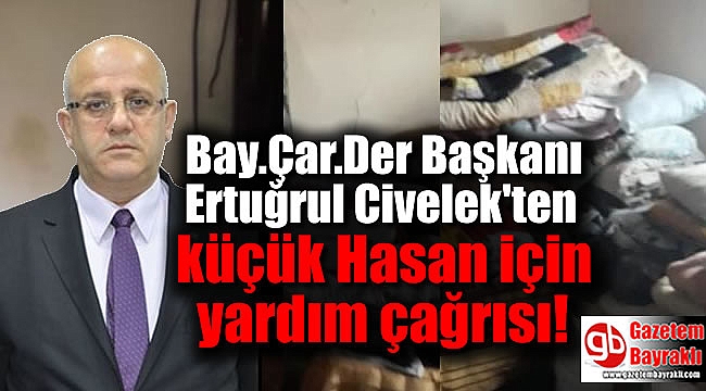 Sosyal sorumluluk projelerine önem veren Ertuğrul Civelek, Annesi küçük yaşta terk eden, hasta bir baba ve yaşlı bir babaanne ile yaşayan Ortaokul birinci sınıf öğrencisi Hasan ile ilgili ‘’Biz bugün Hasan’ı ziyaret ettik. Futbol’u çok seviyormuş, ‘’spor ayakkabım küçük geliyor.’’ dedi utanarak...Çok eksikleri var.Su, elektrik hiçbir sey yok. Su tankı istedi… En zoru susuzluk dedi.Şu mübarek günde yapacağınızz yardımların birazını bu aileye yapın.Benimle iletişime geçerseniz (0554 921 98 98) ailenin telefon ve iletişim bilgilerini veririm.Kurtaralım bu cocuğu sefaletten, hepimizin evladı var.ben kendi adıma üzerime düşen ne varsa yapacağım ama hep birlikte olursak daha çok yardımımız dokunur.''