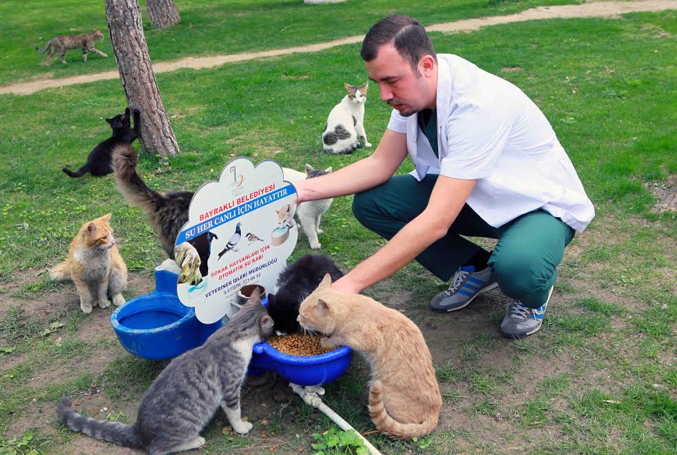 HERKESE GÖREV DÜŞÜYORBayraklı Belediye Başkanı Hasan Karabağ, sokak hayvanları için farklı projeler geliştirdiklerini belirterek, “İlçemizin farklı noktalarına yerleştirdiğimiz yaşam kapları sayesinde can dostlarımız susuz kalmayacak. İnsanların aşırı sıcaktan sıkıntı yaşadığı yaz aylarında hayvanları da düşünmek zorundayız. Onların ihtiyaçlarını görmezden gelemeyiz. Bu noktada hepimize görev düşüyor. Vatandaşlarımız da apartmanlarının önüne koyacakları bir kap su ile onlara destek olabilir” dedi. Editör / Ece İçmez