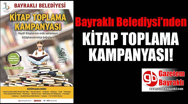 Bayraklı Belediyesi kitap toplama kampanyası başlattı. 15 mahallede faaliyet gösteren kütüphanelerde daha fazla kitabın yer alması için vatandaşlara, “Kullanmadığınız kitaplarınızı evde saklamayın. Kütüphanelerimize bağışlayın” çağrısı yapıldı.