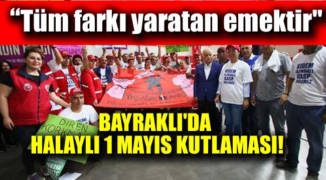 Bayraklı Belediyesi Mustafa Kemal Spor Salonu’ndaki İşçi Bayramı kutlamasına Bayraklı Belediye Başkanı Hasan Karabağ, CHP Bayraklı İlçe Başkanı Cemalettin Alper, CHP İzmir Milletvekili Mustafa Balbay, DİSK 6 No’lu Şube Başkanı Emine Yılmaz ve yönetim kurulu üyeleri, belediye meclis üyeleri ve belediye çalışanları katıldı. İşçiler üzerlerinde, “Kıdemime dokunan eller kırılsın" yazan tişörtler giydi. Ellerinde, “Tüm farkı yaratan emektir", “İşçinin ateşi sermayeyi yakacak", “Yılmadık direndik kazandık", “Mustafa Kemal’in askerleriyiz", “Birleşen işçiler yenilmez" yazan dövizler taşıdı. Bayraklı Belediye Başkanı Hasan Karabağ, konuşmasına Nazım Hikmet’in “Güneş’i içenlerin Türküsü" isimli şiirini okuyarak başladı."İÇİNİZDE İHANETÇİ BARINDIRMAYIN"Bayraklı Belediye Başkanı Karabağ, işçilerden mevzilerini kaybetmemelerini isteyerek, sözlerini şöyle sürdürdü:"Kaymakamlıkla geçinen 20 milyonu geçen açlık sınırında bir insan topluluğu yaratıldı. Taşıma suyla dönen bir ekonomi yaratılıyor. Geldiğimiz nokta iş, ekmek mücadelesi ama cumhuriyet, demokrasi mücadelesiyle birleşerek bir yol çizmek zorundayız. Bayraklı Belediyesi bir mevzidir. Biz buna ön ayak olduk. Bu mevziiyi kaybetmeyin. Başkana, çavuşa, müdüre kızdım şu olmak istiyorum diye belediyeyi yıpratmayın. Biz bugün varız yarın yokuz. İçinizde böyle insanlar varsa içinizden ayıklamaya çalışın. Mevcut yönetime ihanet eden biri, gelecek başka siyasi hareket asla ciddiye almaz. İçinizdeki ihanetçileri kesinlikle barındırmayın. Memurluk diye bir şey kalmıyor. Bu durum sözleşmeli personele dönüşecek, kıdem tazminatı kalkacak. Kölelik düzeni başlayacak. Emek mücadelesini temizlik ya da park ve bahçelerde çalışan işçiler değil, memurları da tüm çalışanları ilgilendiriyor.""KIDEM TAZMİNATIMA DOKUNMA"DİSK 6 No’lu Şube Başkanı Emine Yılmaz ise, “Kıdem tazminatımıza dokunmaya çalışıyorlar. Buna izin vermeyiz. İktidarda hangi parti olursa olsun işçi aleyhine kanun çıkartıyorsa, gecenin bir vakti ellerini kaldırıp kiralık iççi yasasını çıkarıyorsa, kıdem tazminatlarını gasp etmeye çalışıyorsa, DİSK olarak meydanlarda söylemlerimizle buna karşısında olacağız" dedi.Konuşmaların ardından Başkan Karabağ, çalışanlarla halay çekti. Karabağ ardından da Gündoğdu Meydanı’ndaki kutlamalara katıldı.
