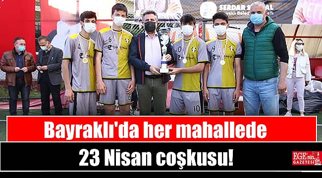 Bayraklı Belediyesi tarafından ilçenin her mahallesinde büyük coşkuyla gerçekleştirilen 23 Nisan Şenlikleri kapsamında Spor İşleri Müdürlüğü tarafından düzenlenen turnuvalar çekişmeli müsabakalara sahne oldu. Spor İşleri Müdürlüğü tarafından hazırlanan futbol, basketbol, voleybol, jimnastik, ayak tenisi, engellilere yönelik corn hole ve masa tenisi turnuvaları ile Bayraklılı bin 200 çocuk Bayraklı Belediyesinin 23 Nisan Şenliklerinde bir araya geldi. Etkinliklerde pandemi tedbirleri kapsamında tüm önlemler alınırken, dezenfektan ve maske standıyla da çocuklar ve aileleri sürekli ellerini dezenfekte ederek, maskelerini yeniledi. Ayrıca tüm sporcular ve ailelerinin tesislere girişi, HES kodu sorgulamasının ardından güvenli şekilde sağlandı. Bu kapsamda Şehit Ümit Boz Spor Tesisi’nde düzenlenen turnuvaların finaline Bayraklı Belediye Başkanı Serdar Sandal, CHP Bayraklı İlçe Başkanı Pınar Susmuş, Sayra ve Çınar Alpgündüz’ün annesi Tülin Batmaz, babası Alican Alpgündüz, CHP Bayraklı kadın ve gençlik kolları, ilçe yöneticileri, meclis üyeleri, muhtarlar, amatör spor kulüpleri temsilcileri, sporcular ve aileleri katıldı.
