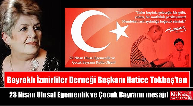 Bayraklı İzmirliler Derneği Başkanı Hatice Tokbaş, 23 Nisan Ulusal Egemenlik ve Çocuk Bayramı dolayısıyla mesaj yayımladı.
