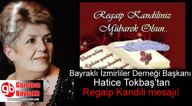 Bayraklı İzmirliler Derneği Başkanı Hatice Tokbaş, Mübarek 3 aylara girmemizin habercisi olan Regaip Kandili dolayısıyla mesaj yayımladı.