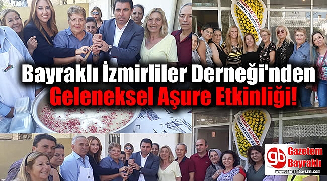 Bayraklı İzmirliler Derneği aşure etkinliğinde yapılan aşurenin ay yıldızlı olması dikkat çekerken her yıl gerek dernek üyelerinin gerekse bağışçılarının katkısı ile etkinliklerini gerçekleştirmeye çalışan Bayraklı İzmirliler Derneği,''Etkinliğimize başta yoğun programı dolayısı ile aramızda olamadığı için gönderdiği güzel çicek için Belediye Başkanımız Sayın Serdar Sandal'a, CHP Bayraklı İlçe Başkanımız Sayın Cemalletin Alper'e ve yönetimine, Meclis üyelerine, Kadın Kolları başkanımız Zeliha Avar'a ve yönetimine İlçede bulunan yöresel dernek başkanlarına ve çok sayıda dernek üye ve vatandaşlarımıza bizi yalnız bırakmayarak katılımlarindan dolayı çok teşekkür ederiz.'' açıklamasında bulundu.