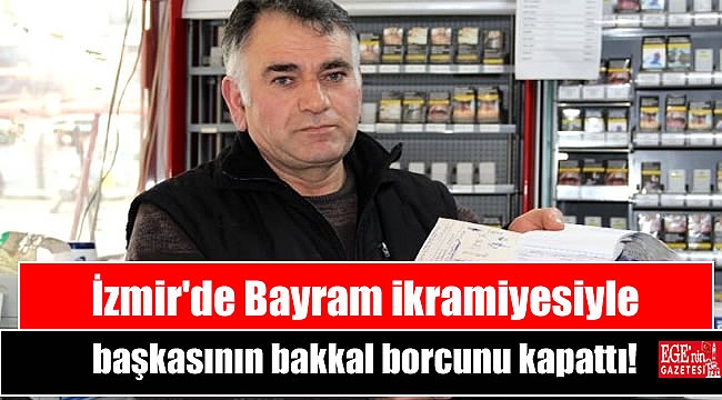 İzmir'de bir hayırsever, emeklilere verilen bayram ikramiyesi ile ihtiyaç sahibi vatandaşın bakkala bulunan borcunu sildirdi.İzmir'in