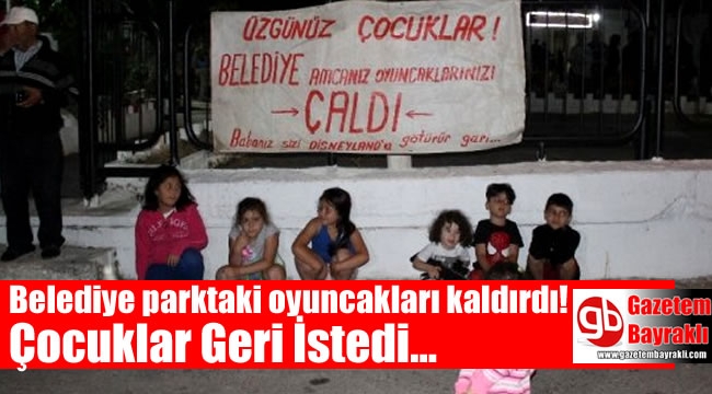 Öte yandan mahalle sakinlerinin parkın girişine astıkları "Üzgünüz çocuklar! Belediye amcanız oyuncaklarınızı çaldı" yazılı pankartta dikkat çekti.