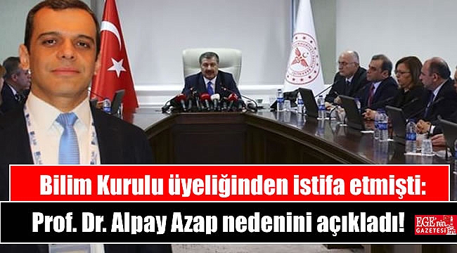 Prof. Dr. Alpay Azap, Koronavirüs Bilim Kurulu üyeliğinden istifa ettiğini açıklamıştı. Salgının ilk dönemlerinde ekranlarda sık sık görmeye alıştığımız Prof. Dr. Azap istifa gerekçesini "Faydalı olmadığımı düşündüm. Yükselen ikinci dalga, hastaneden kafamı çıkarmama izin vermiyordu. Enerjimi hastalara, bilimsel araştırmalara ve derneğe ayırmaya karar verdim" sözleriyle açıkladı.