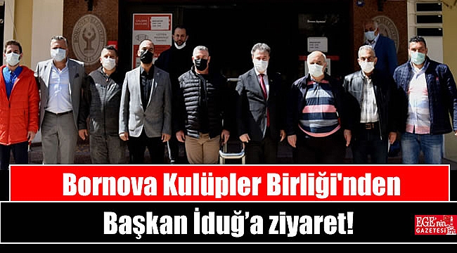 Bornova Kulüpler Birliği’nin geçtiğimiz ay göreve gelen yönetimi ilk ziyaretini Bornova Belediye Başkanı Dr. Mustafa İduğ’a yaptıBaşkanlığını Mustafa Yılmaz’ın yaptığı Bornova Kulüpler Birliği’nin yeni yönetimi, Bornova Belediye Başkanı Dr. Mustafa İduğ’u ziyaret etti. Mustafa Yılmaz ve aralarında Bornova Belediyesi Meclis Üyesi Mehmet Turu’nun da bulunduğu yönetim kurulu, bugüne kadar verdiği destek için Başkan İduğ’a teşekkür ederek, amatörler adına Bornova Belediyesi’nden bekledikleri destekleri dile getirdi.