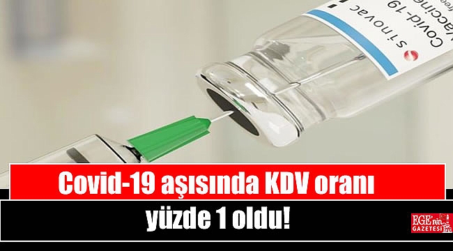 Covid-19 aşısı için uygulanacak katma değer vergisi (KDV) oranı, yüzde 1 olarak belirlendi.Resmi Gazete’de bugün yayımlanan “Mal ve hizmetlere uygulanacak katma değer vergisi oranlarının tespitine ilişkin kararda değişiklik yapılmasına dair” Cumhurbaşkanı Kararı’nda “Sağlık Bakanlığınca onaylanan Covid-19 aşılarının, 31 Aralık 2021 tarihine kadar (bu tarih dahil) tesliminde, bu kararın 1'nci maddesinin birinci fıkrasının (b) bendinde belirtilen vergi oranı uygulanır.” ifadeleri yer aldı.Söz konusu maddenin ilgili kısmında yüzde 1’lik vergi oranı yer alıyor.