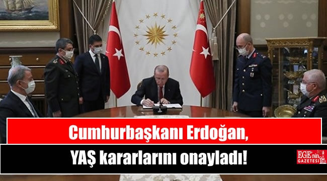 Cumhurbaşkanı Erdoğan, Yüksek Askeri Şura kararlarını onayladı.Yüksek Askeri Şura kararları kapsamında 17 general ve amiral bir üst rütbeye, 51 albay, general ve amiralliğe yükseltildi. YAŞ kararları kapsamında 35 general ve amiralin görev süreleri bir yıl, 294 albayın görev süreleri ise iki yıl uzatıldı. YAŞ kararlarına göre, 30 general/amiral kadrosuzluk nedeniyle emekliye sevk edildi. 226 olan general/amiral sayısı 30 Ağustos itibarıyla 247 olacak. YAŞ kararlarıyla Genelkurmay 2. Başkanı Korgeneral Metin Gürak orgeneralliğe, Donanma Komutanı Koramiral Ercüment Tatlıoğlu oramiralliğe terfi etti.