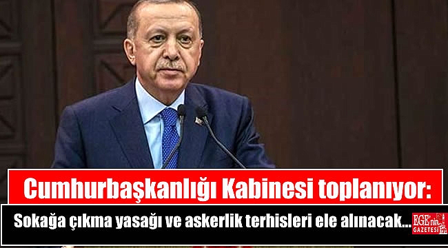 Cumhurbaşkanlığı Kabinesi bugün Cumhurbaşkanı Erdoğan başkanlığında telekonferans sistemiyle toplanacak. Erdoğan, toplantıya, çalışmalarını sürdürdüğü İstanbul'daki Tarabya Huber Köşkü'nden katılacak. Bakanların sunum yapması beklenilen toplantıda sokağa çıkma yasağı, ekonomik tedbirler ve askerlik terhisleri ele alınacak. Öte yandan Cumhurbaşkanı Erdoğan alınan kararları, ulusa sesleniş yaparak duyuracak.