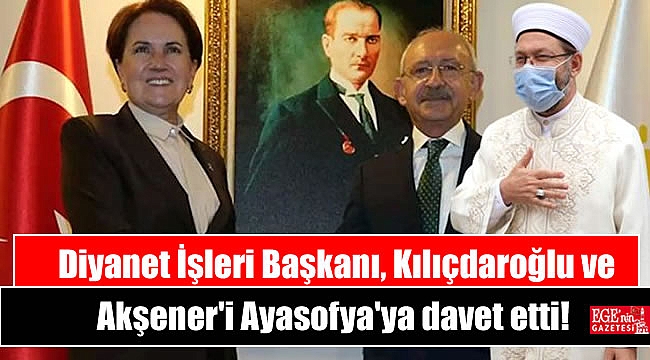 Kılıçdaroğlu katılmıyor ama Akşener katılıyor. Diyanet İşleri Başkanı Ali Erbaş, İYİ Parti Genel Başkanı Meral Akşener'i de arayarak Ayasofya'da kılınacak ilk cuma namazına davet etmiş. Akşener, Diyanet İşleri Başkanı'nın davetinden memnun kaldığını ifade edip cuma günü Ayasofya'da olacağını bildirmiş.