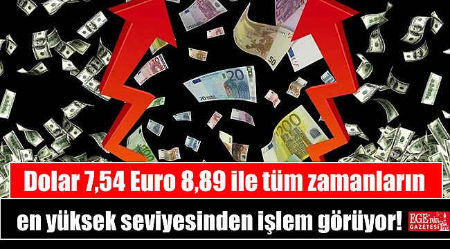 Dolar 7,54 Euro 8,89 ile tüm zamanların en yüksek seviyesinden işlem görüyor