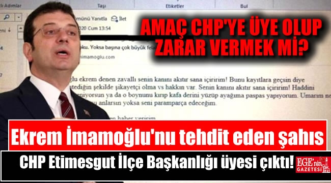 Ekrem İmamoğlu'nu tehdit eden şahıs CHP Etimesgut İlçe Başkanlığı üyesi çıktı amaç CHP'ye üye olup zarar vermek mi