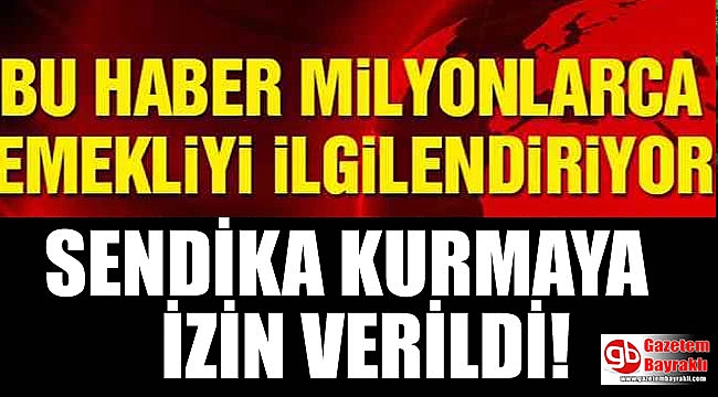 Milyonlarca emeklinin sendikalı olmasının yolu açıldı. Ankara Valiliği emeklilerin sendika kurmasına izin vermezken mahkeme kararı bozdu. Milyonlarca emekli kurulan Emekliler Sendikası'na üye olabilecek. Şu an memur emeklilerinin zammı Memur-Sen tarafından yapılan pazarlıkla belirleniyor. (Sözcü)