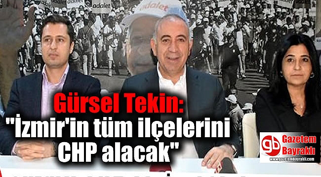 CHP İstanbul Milletvekili Gürsel Tekin, İzmir'deki destek turunda partisinin İl Başkanlığı'nı ziyaret etti. Gürsel Tekin, 2009 seçimlerinde olduğu gibi İzmir'in bütün ilçelerini CHP'nin alacağına inandığını ileri sürerek, Cumhurbaşkanı Recep Tayyip Erdoğan'ın İzmir'in göç aldığına yönelik açıklamalarına da değindi sözlerini şöyle sürdürdü: