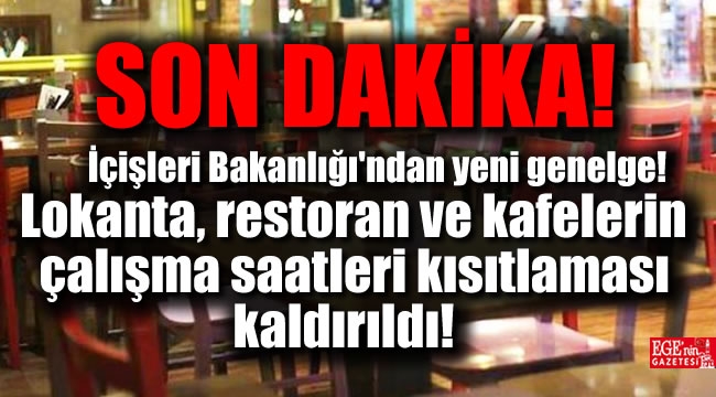 İçişleri Bakanlığı'ndan yeni genelge: Lokanta, restoran ve kafelerde çalışma saatleri kısıtlaması kaldırıldı