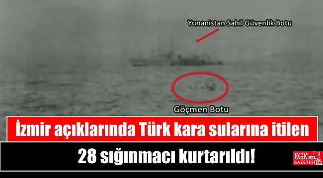 İzmir'in Dikili ilçesi açıklarında, Yunan sahil güvenliği tarafından Türk karasularına itilen 28 sığınmacı kurtarıldı.