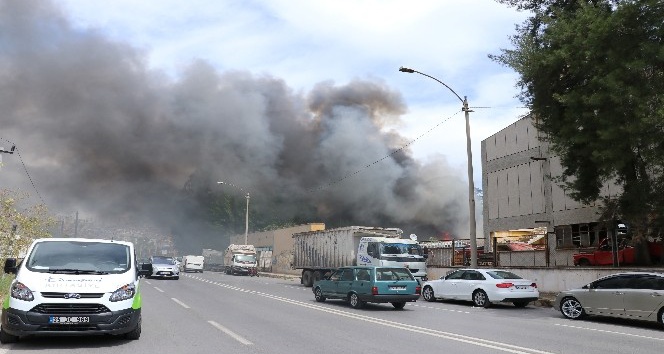 Dakikalar içerisinde ilçeyi kara bir duman sararken, yangın İZBAN hattında bulunan otluk alana da sıçradı.Yangın, bugün öğle saatlerinde Ozan Abay Caddesi üzerinde bulunan bir hurdalıkta çıktı.
