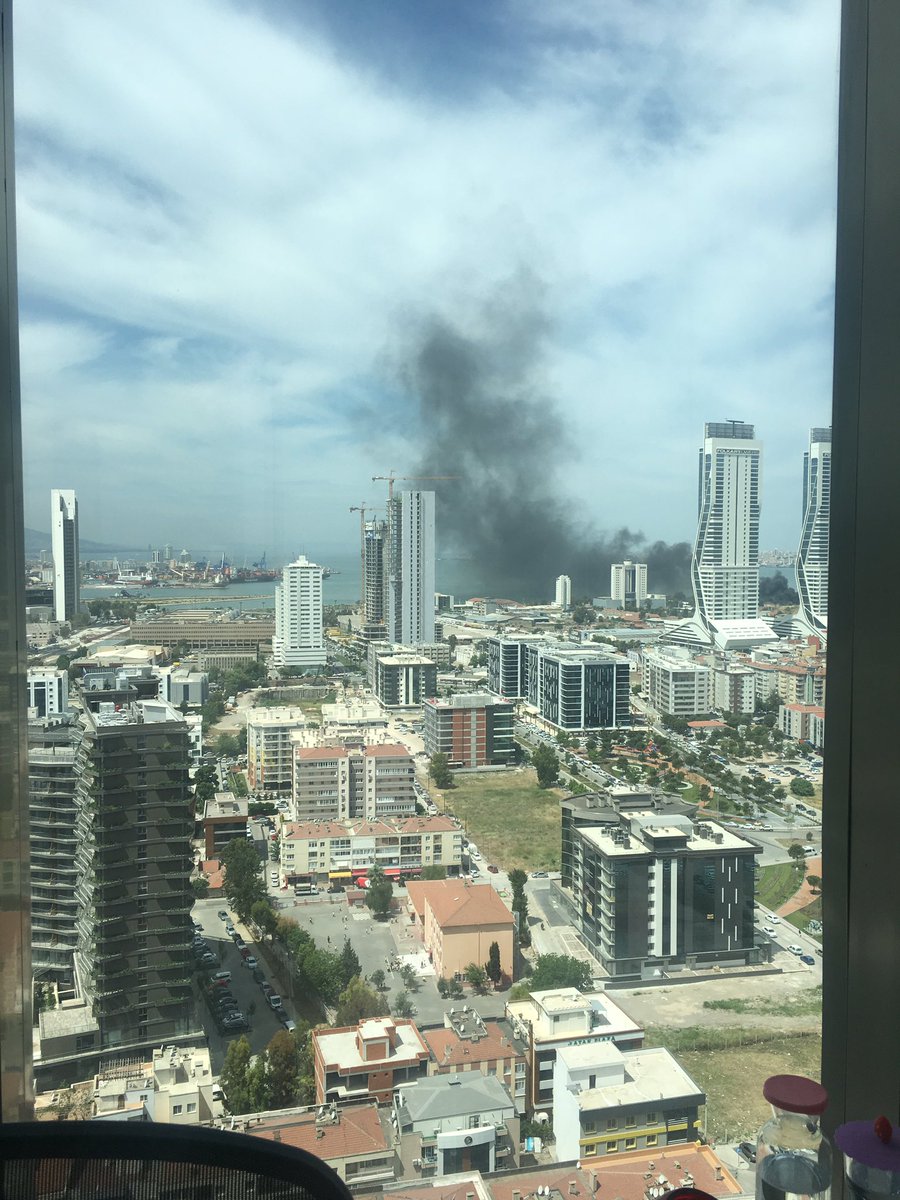 İzmir'in Bayraklı ilçesinde çıkan yangın ardından gökyüzü siyaha büründü. Olay yerine çok sayıda itfaiye sevk edildi.
