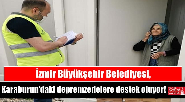 İzmir Büyükşehir Belediyesi, Karaburun'un Kösedere Mahallesi'nde evleri depremden ağır hasar görün ailelerin de yardımına koştu.Büyükşehir'in evleri depremde ağır hasar gören haneler için verdiği 10 bin TL. nakdi destekten yararlanmak isteyen depremzedelerin başvuruları ve evrakları alınarak ödemenin yapılması için işlemler başlatıldı.