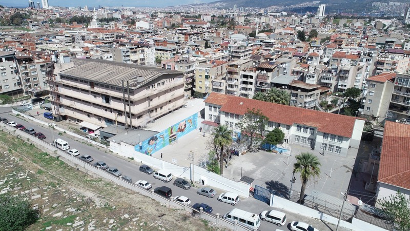 İzmir Büyükşehir Belediyesi ve Darağaç Sanat Kolektifi, Konak'taki Mimar Sinan İlkokulu ve Mimar Sinan Ortaokulu’nu muralla (duvar resmi) renklendiriyor. 23 Nisan Ulusal Egemenlik ve Çocuk Bayramı etkinlikleri kapsamında Darağaç Sanat Kolektifi’nden Ali Kanal, Fidan Budak, Zarife Arslan, Suat Serkan Çelmeli ve Hilal Doğan, okulun karşılıklı iki duvarından oluşan toplamda 500 metrekarelik alana akrilik ve sprey boyalarla deniz yaşamını çiziyor.
