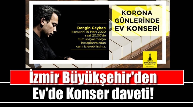 "Korona Günlerinde Ev Konseri" başlığı altında duyurulan konser bu akşam (19 Mart Perşembe) saat 20:00'da İzmir Büyükşehir Belediyesi'nin sosyal medya adreslerinden canlı olarak yayınlanacak..