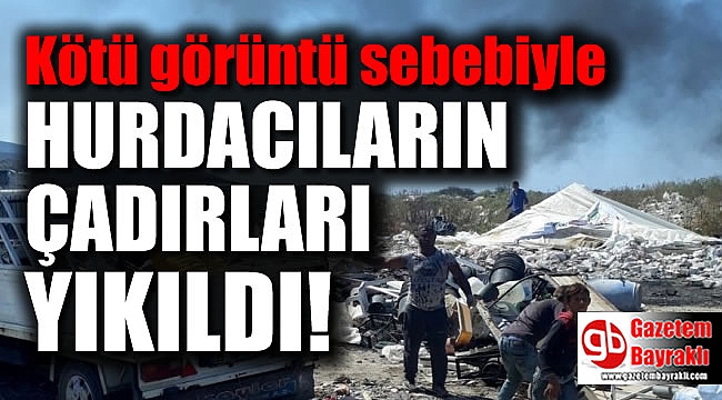 İzmir’in turistik ilçesi Çeşme’de zabıta ekipleri, ilçe girişinde kötü görüntü oluşturan hurdacı çadırlarına operasyon düzenleyerek yıktı.