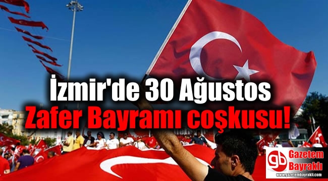 İzmir'de, 30 Ağustos Zafer Bayramı yarın coşkuyla kutlanacak.30 Ağustos Zafer Bayramı kutlamaları yarın İzmir'de Alsancak Cumhuriyet Meydanı Atatürk Anıtı'na çelenklerin sunulması ile başlayacak, saygı duruşu ve İstiklal Marşı'nın okunmasıyla Türk bayrağı göndere çikelecek.İzmir Valisi Erol Ayyıldız, makamında tebrikleri kabul edecek, geçit töreni Cumhuriyet Meydanı'nda yapılacak. İzmir Valisi Ayyıldız, Ege Ordusu ve Garnizon Komutanı Orgeneral Abdullah Recep ile İzmir Büyükşehir Belediye Başkanı Tunç Soyer, törene katılanların bayramını kutlayacak.Saat 11.00'de geçit töreni başlayacak. Ege Ordusu ve Garnizon Komutanlığı Bölge Bandosu, Güney Deniz Saha Komutanlığı Bandosu ve Hava Eğitim Komutanlığı Bandosu akşam saatlerinde Cumhuriyet Meydanı, Kıbrıs Şehitleri Caddesi, Karşıyaka Vapur İskelesi'nde konser verecek. (DHA)