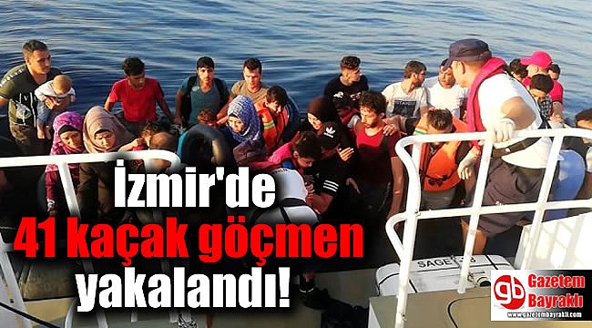İzmir'in Menderes ilçesinde yasa dışı yollardan Yunanistan'a geçmeye çalışan 41 kaçak göçmen, Sahil Güvenlik ekipleri tarafından yakalandı.Alınan bilgiye göre, Sahil Güvenlik ekipleri, Menderes ilçesi Özdere açıklarında kaçak geçiş yapmaya çalışan göçmen grubunu fark etti. Durdurulan lastik bottaki 28 Suriye ve 13 Filistin uyruklu olmak üzere 41 kaçak göçmen yakalandı. Kaçak göçmenler, İzmir İl Göç İdaresi Müdürlüğü'ne teslim edildi.