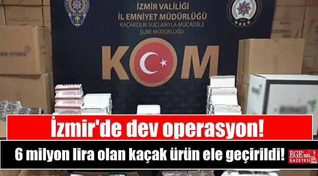 Bir iş yeri ve depoya gerçekleştirilen operasyonda, piyasa değeri 6 milyon lira olan kaçak ürünler ele geçirildi.İzmir İl Emniyet Müdürlüğü Kaçakçılık Suçlarıyla Mücadele Şube Müdürlüğü ekipleri, 26 Nisan tarihinde Konak ilçesinde bulunan bir iş yeri ve bir depoya yönelik operasyon gerçekleştirdi.