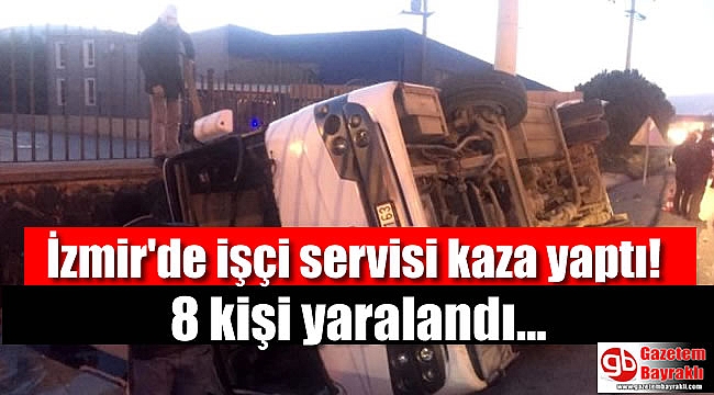 İzmir'in Kemalpaşa ilçesinde işçileri taşıyan servis kaza yaptı. Meydana gelen kazada serviste bulunan 23 işçiden 8'i yaralandı. Olay yerine çok sayıda sağlık ekibi sevk edildi. Edinilen bilgiye göre, kaza saat 18.00 sıralarında Ankara Asfaltı Caddesi üzerinde meydana geldi. İddiaya göre, fabrika işçilerini taşıyan 35 S 65163 plakalı servis minibüsü, işçileri alıp fabrikadan yola çıktı. Fabrikadan Ankara Asfaltı Caddesi'ne çıkış yapan minibüse 35 GA 2918 plakalı otomobil arkadan hızla çarptı.