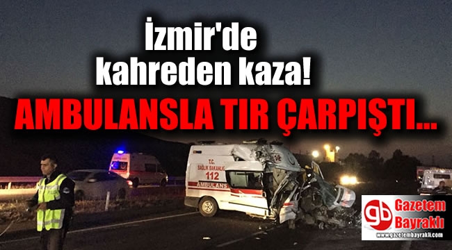 İzmir’in Aliağa ilçesinde, bir ambulans tıra arkadan çarptı. Hurdaya dönen ambulansta 1 sağlık personeli hayatını kaybetti,2 sağlık personeli yaralandı. Kaza, bugün saat 05.00 sıralarında İzmir -Çanakkale Yolu Çaltı Dere Mahallesi çıkışında meydana geldi.