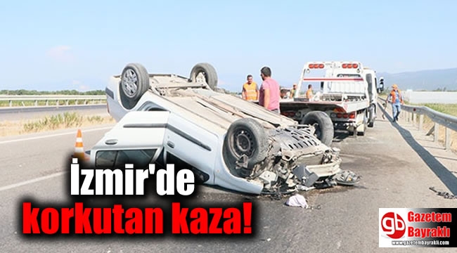 İzmir'in Bergama ilçesinde kontrolden çıkan otomobil, bariyerlere çarparak takla attı. Araçtaki aile kazadan sağ kurtuldu. Edinilen bilgiye göre, Soma'dan Bergama yönüne seyir halinde olan 10 BAY 26 plakalı otomobilin sürücüsü İmral Kaya (42) direksiyon hakimiyetini kaybedince araç bariyerlere çarptı. Çarpmanın etkisiyle takla atan otomobil kullanılamaz hale geldi. Vatandaşlar kazayı sağlık ekiplerine bildirdi. Olay yerine gelen ekipler tarafından araçtan çıkartılan sürücü Kaya'nın eşi Zühre Kaya (32) ve iki çocukları kazayı hafif yaralarla atlattı. Bergama Necla Mithat Öztüre Devlet Hastanesine kaldırılan Kaya ailesinin sağlık durumunun iyi olduğu öğrenildi. (İHA)