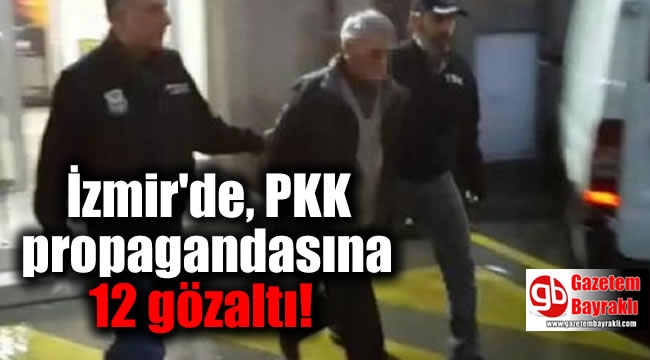 İZMİR'de, sosyal medya hesaplarından bölücü terör örgütü PKK'nın propagandasını yaptıkları tespit edilen 12 kişi gözaltına alındı.İzmir Emniyet Müdürlüğü Terörle Mücadele Şubesi ekipleri, sosyal medya hesaplarından bölücü terör örgütü PKK'nın propagandasını yapan kişilere yönelik, bu sabah saatlerinde eş zamanlı operasyonlar düzenledi. Baskınlarda, haklarında gözaltı kararı verilen 12 kişi yakalandı. Şüphelilerin adreslerinde yapılan aramalarda, çok sayıda örgütsel malzeme ve dijital materyal ele geçirildi. Gözaltına alınan şüpheliler, sorgulanmak üzere Terörle Mücadele Şube Müdürlüğü'ne götürüldü.