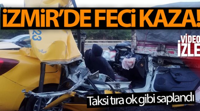 İzmir'de ticari taksi tıra ok gibi saplandı: 1 ölü, 2 ağır yaralı