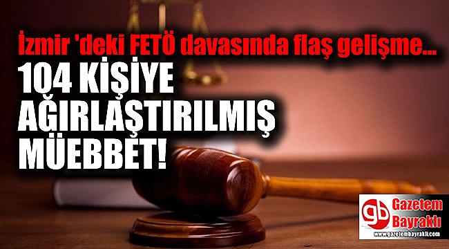 İzmir'de, Fetullahçı Terör Örgütü/Paralel Devlet Yapılanması'nın (FETÖ/PDY) 15 Temmuz'daki darbe girişiminin ardından açılan, örgüt elebaşı Fethullah Gülen'in bir numaralı sanık olduğu, 147'si tutuklu, 280 sanık hakkındaki davanın görülmesine devam edildi. Davada, 104 sanığa ağırlaştırılmış ömür boyu hapis cezası verildi.