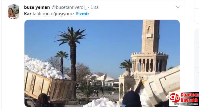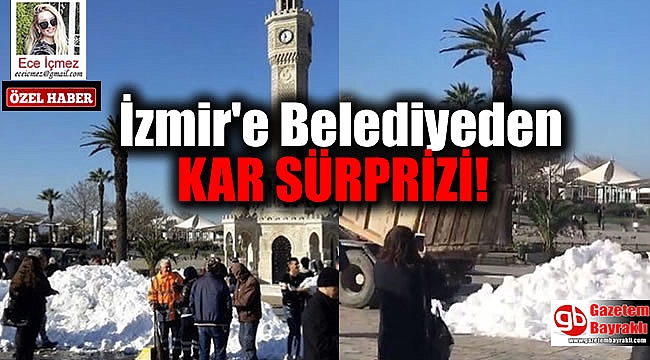 (Özel Haber- Ece İçmez) İzmir Büyükşehir Belediyesi İzmirlileri sevindirecek oluşuma imza attı. İzmir Saat Kulesine 2 kamyon kar getirerek İzmirli vatandaşlara kar sevinci yaşattı.