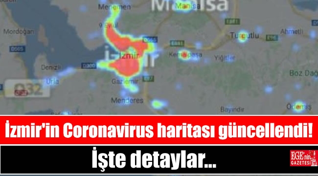 İstanbul ve İzmir başta olmak üzere çok sayıda vatandaşın ölümüne neden olan koronavirüs salgını ile ilgili olarak Sağlık Bakanı Fahrettin Koca tarafından il bazlı haritalandırma çalışması kamuoyuna sunulmuştu. Son olarak Sağlık Bakanlığı’nın 3 Nisan’da yayınladığı açıklamada vaka sayısının 1105 olduğu ve 27 kişinin hayatını kaybettiği İzmir’de yeni bir açıklama yapılmazken geometic.org/koronavirus adresinde yeni bir haritalandırma yapıldı...Bu haritaya göre İzmir'in merkezinde yoğun koronavirüs tehlikesi gözlenirken, ilçe merkezlerinde de yoğunluğun giderek arttığı gözleniyor.Yapılan grafiklendirme sonrası nüfusun fazla olduğu bölgelerde koronavirüs her geçen gün yoğunluğunu arttırıyor(Hürriyet)
