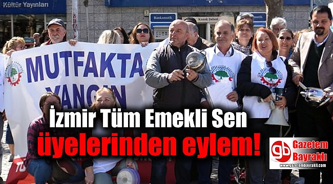 Tüm Emekli Sen tarafından eş zamanlı olarak gerçekleştirilen eyleme, İzmir şubeleri de katıldı. İzmir'de Konak Meydanı'nda düzenlenen eylemde sendika üyelerine CHP Konak İlçe Başkanı Çağrı Gruşçu da destek verdi. Eylemciler tencere, tava ve kaşıklarla ritim tuttu, sıkıntılarını dile getirdi.