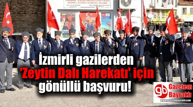 İzmir'de, Ödemiş Muharip Gaziler Derneği üyeleri, ellerinde Türk bayraklarıyla askerlik şubesine gelerek, TSK'nın Suriye'nin Afrin kentindeki PKK/YPG terör örgütüne yönelik başlattığı 'Zeytin Dalı Harekatı'na destek için gönüllü askerlik başvurusunda bulundu.